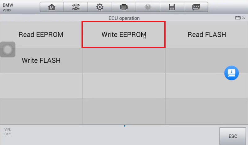 Writing EEPROM function may cause the loss of ECU data, it is recommended that the original EEPROM and FLASH data of ECU be backed up first.